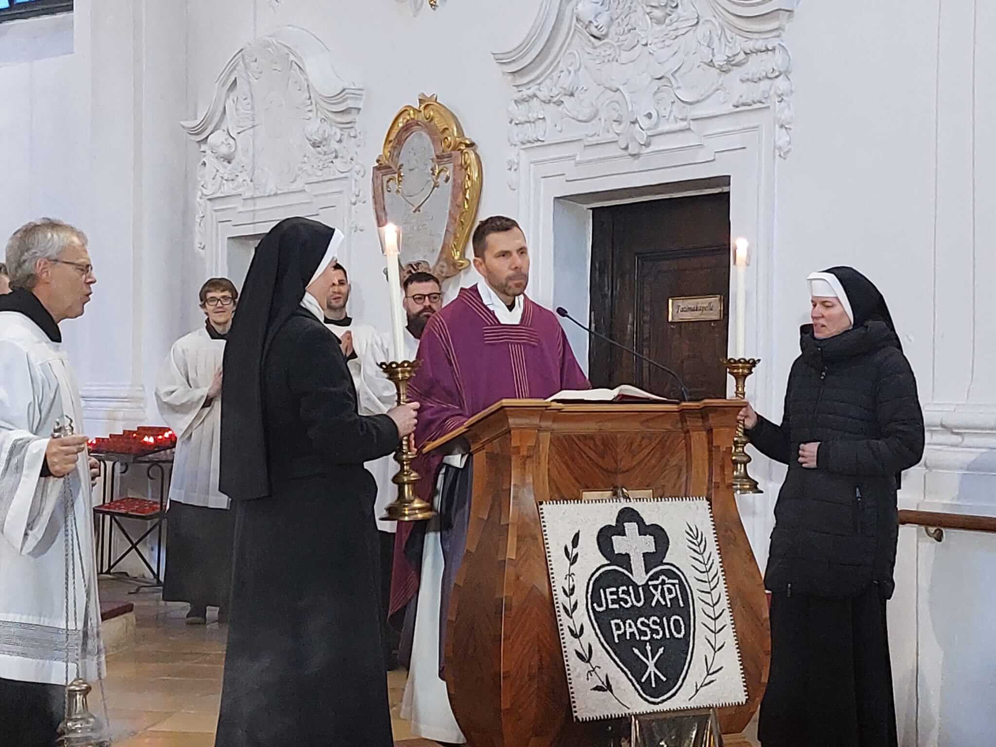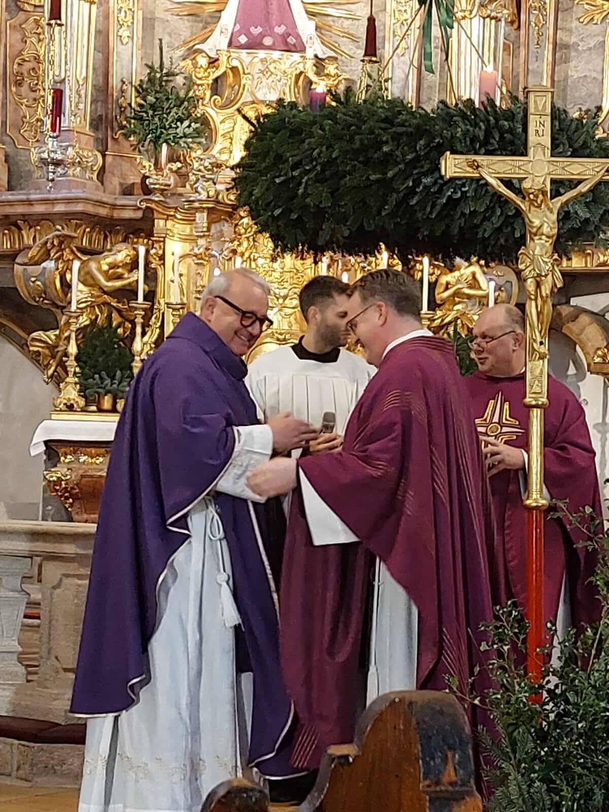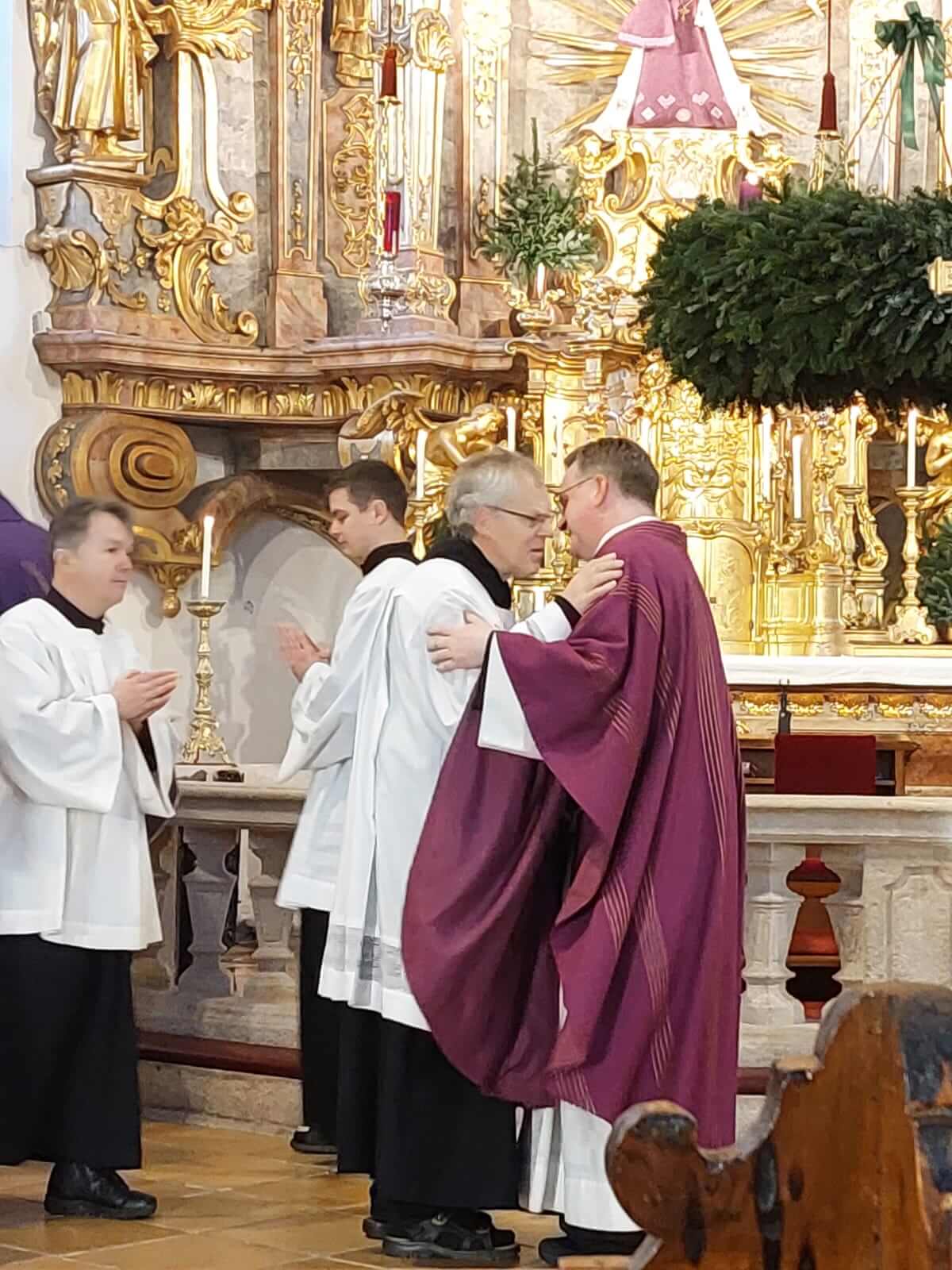 Am 4. Adventssonntag kam die Maria Schutzer Familie zusammen, um einerseits P. Markus Seidler CP zu verabschieden, der in das Kloster Eichstätt versetzt wird, und andererseits P. Thomas Höflich CP als neuen Rektor des Klosters Maria Schutz einzuführen. Den Beginn machte ein Festgottesdienst unter Vorsitz von P. Provinzial Lukas Temme CP. In seiner Predigt führte er den hl. Josef an, der trotz mancher Unsicherheit sich voll Vertrauen auf Gottes Wege einließ und so fruchtbar wirken konnte. So sei es auch manchmal im Ordensleben, wo der Wille Gottes sich nicht immer sofort erschließe, aber, im Vertrauen angenommen, stets zum Guten führe. Mit der Überreichung der Ernennungsurkunden an P. Thomas CP als Rektor und P. Pius CP als Vikar wurden die beiden Mitbrüder in ihre Ämter eingesetzt.