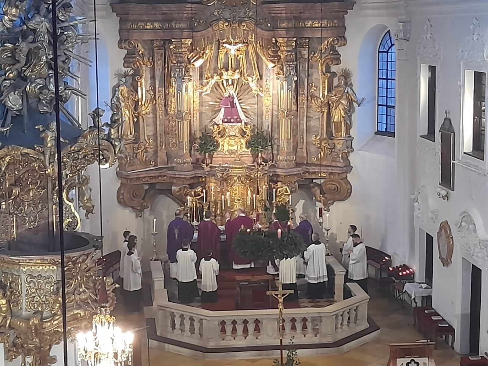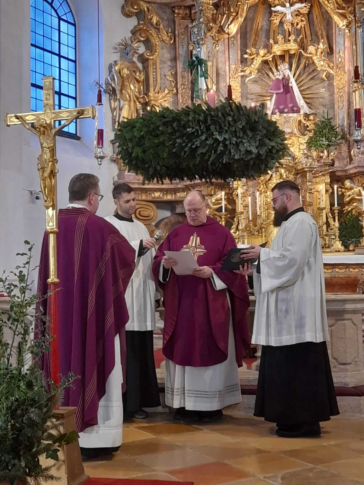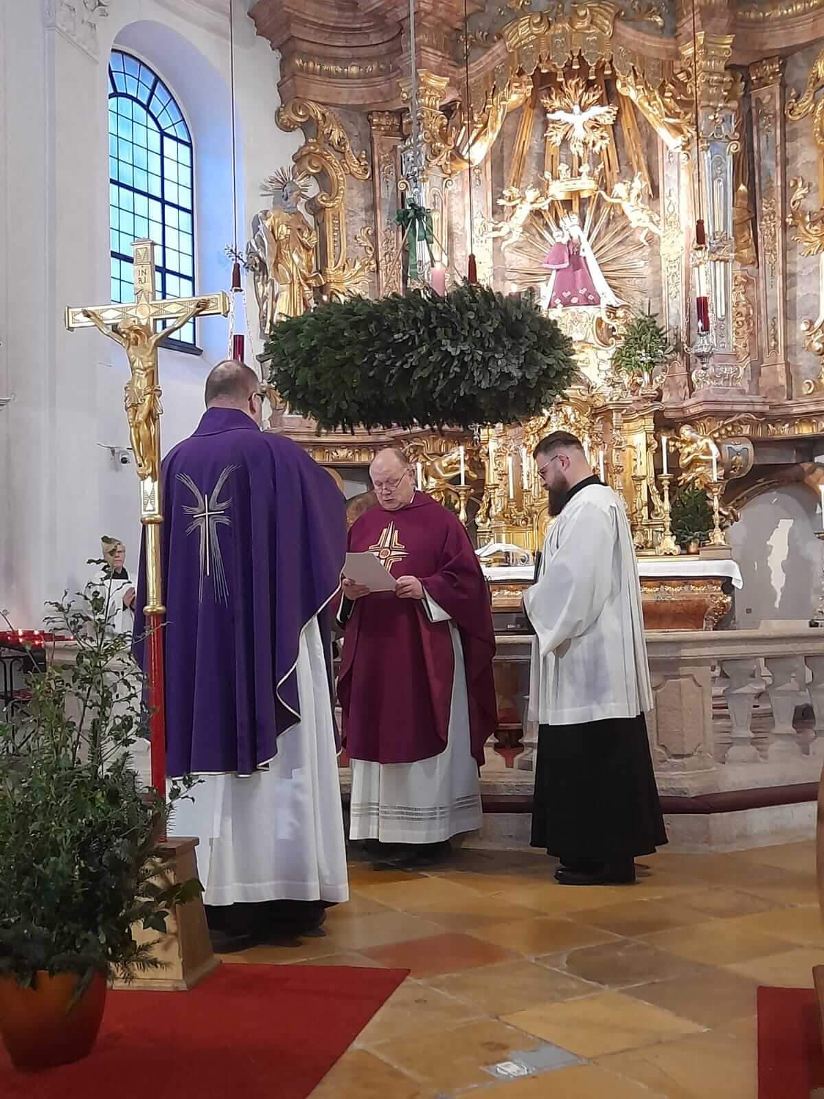 Am 4. Adventssonntag kam die Maria Schutzer Familie zusammen, um einerseits P. Markus Seidler CP zu verabschieden, der in das Kloster Eichstätt versetzt wird, und andererseits P. Thomas Höflich CP als neuen Rektor des Klosters Maria Schutz einzuführen. Den Beginn machte ein Festgottesdienst unter Vorsitz von P. Provinzial Lukas Temme CP. In seiner Predigt führte er den hl. Josef an, der trotz mancher Unsicherheit sich voll Vertrauen auf Gottes Wege einließ und so fruchtbar wirken konnte. So sei es auch manchmal im Ordensleben, wo der Wille Gottes sich nicht immer sofort erschließe, aber, im Vertrauen angenommen, stets zum Guten führe. Mit der Überreichung der Ernennungsurkunden an P. Thomas CP als Rektor und P. Pius CP als Vikar wurden die beiden Mitbrüder in ihre Ämter eingesetzt.